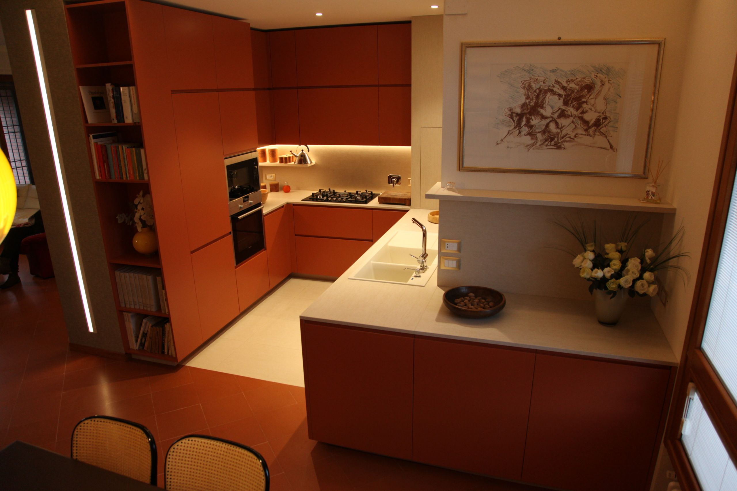 Questo progetto di interni ci ha coinvolto molto insieme al committente ed al mobiliere per il progetto della cucina, mentre per il progetto del bagno abbiamo ideato un mobile personalizzato che rispondesse alle richieste manifestate.