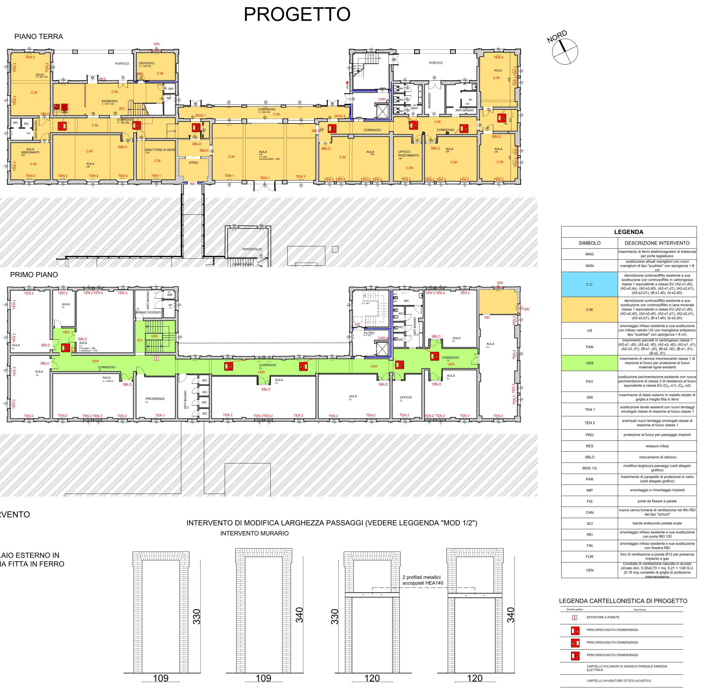di pareti con lastre ignifughe, interventi di allargamento murario per adeguare la larghezza